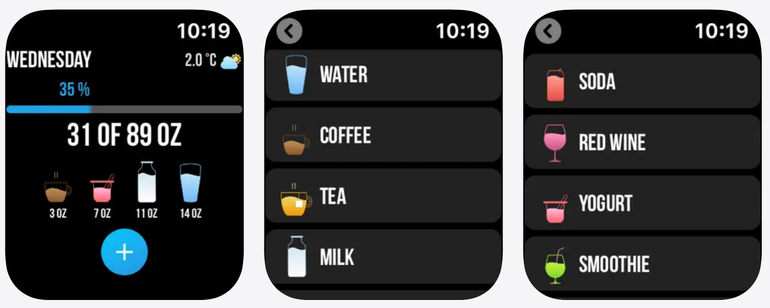 Water Reminder’s best feature is the simplicity of logging from your Apple Watch—no extra fuss, just a tap, and you’re moving toward your daily hydration target.